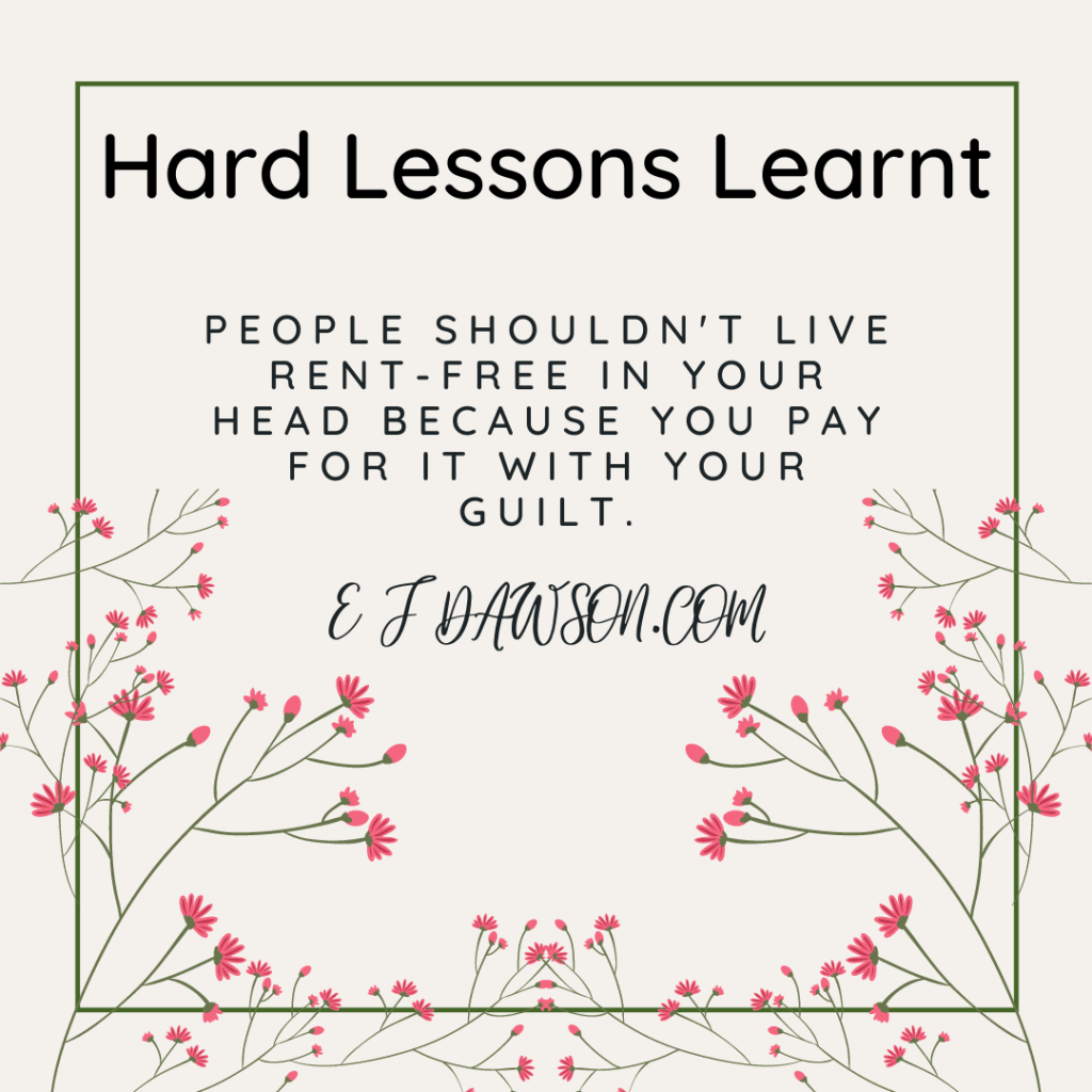 Every time you see those responses please be aware that those opinions are just that. Opinions. These people shouldn’t live inside your head rent free because you pay for it with guilt. You choose who you spend your emotional effort on, and it shouldn’t be on people who hurt you. When you find yourself feeling like this, ask yourself; what purpose does feeling like this help me? Can I change what was said or done?